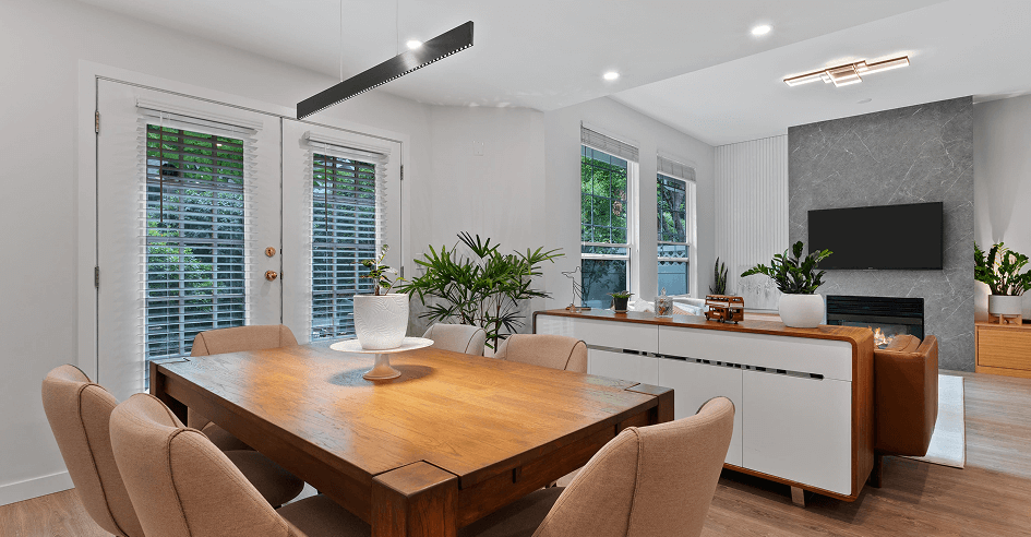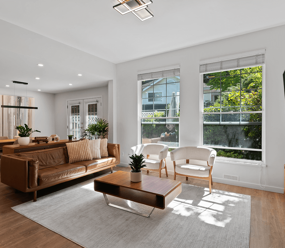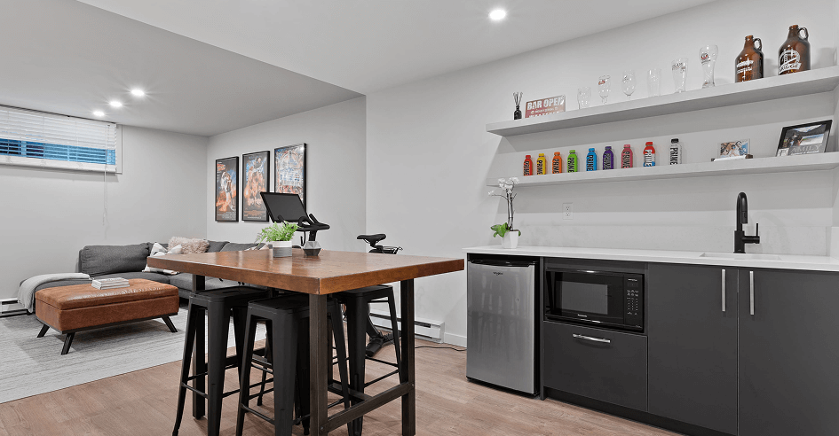 Complete remodel of the main living space and basement. The challenge here was to integrate living room with dining/kitchen in a seamless way.